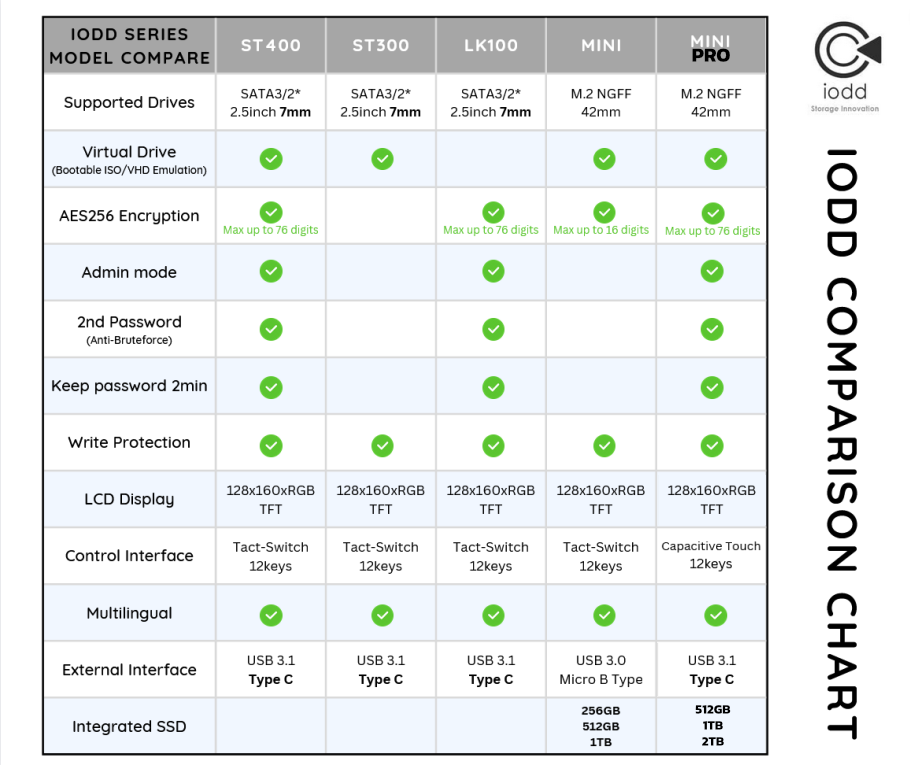 For the price range you get an absolutely secure encryption for the included harddisk and an ingenious possibility to start images from iso images. You can put several ISO files in a directory and then choose which one to insert via the menu in the display. On the PC connected via USB, this is then recognized as a CD/DVD drive. The hard drive is recognized as an external USB drive.